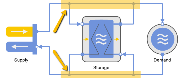 There are two Operating modes with which thermal storage tanks (Cooling Storage, Heat Storage, Stratified Heat Storage) can be integrated into a scheme.